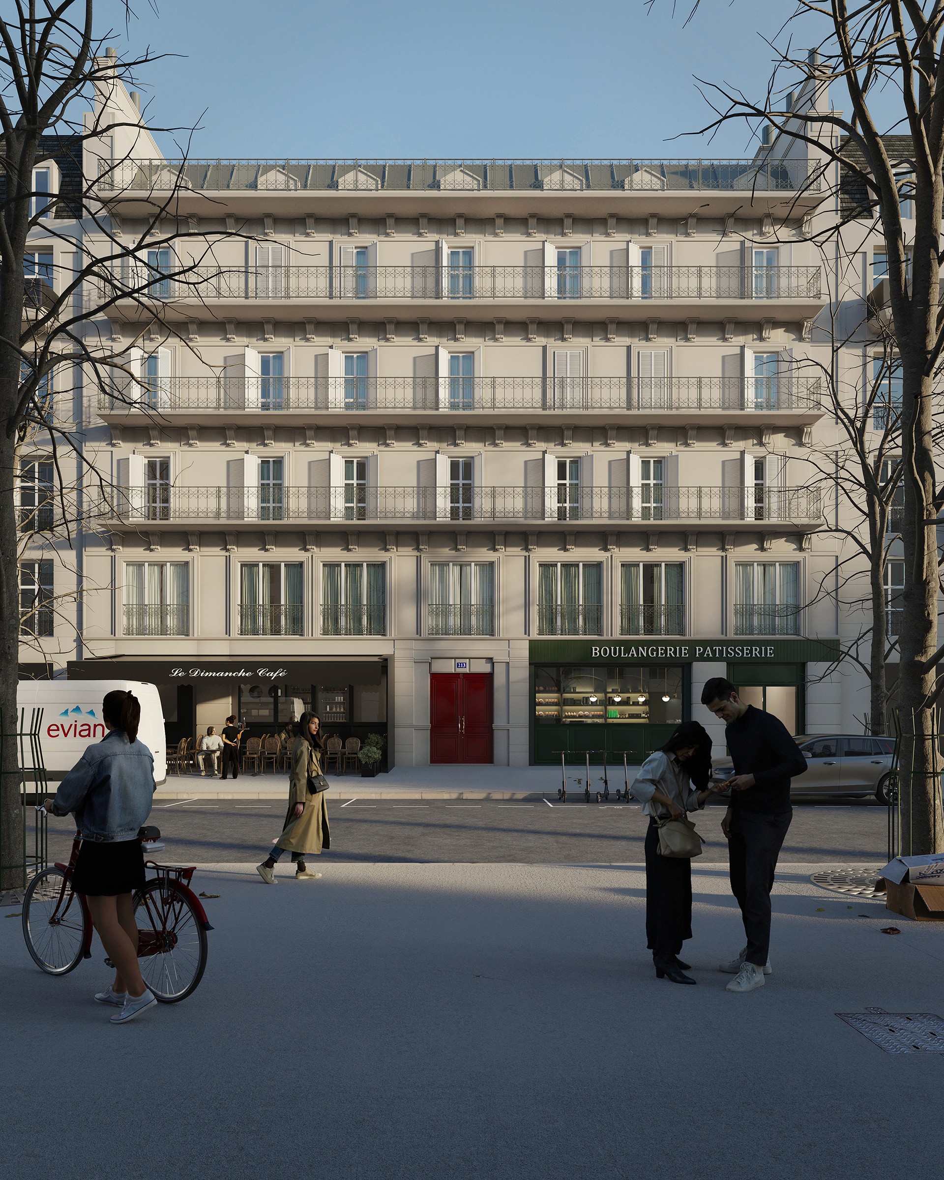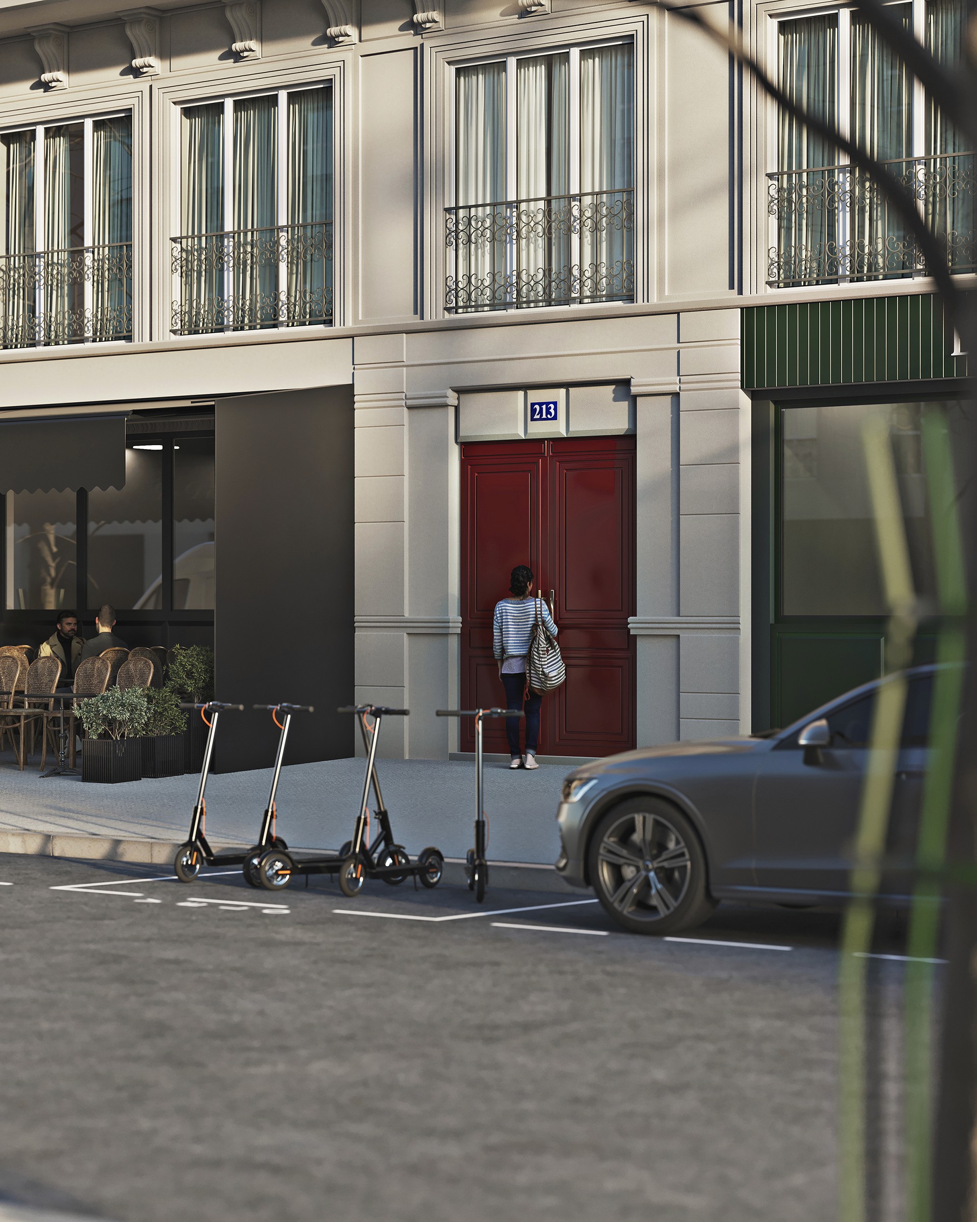 A development designed for a simple and balanced way of living, where architecture is presented clearly and without excess.The materiality explores soft contrasts, combining deeper grey tones with light beige to create a contemporary yet welcoming atmosphere that feels easy to live in.Natural light enters in a direct way, shaping the volumes throughout the day and giving rhythm to the façades. There is a constant sense of presence, of sunlight, shadow and time passing.Human presence is subtle and restrained, just enough to suggest use and reinforce scale.More than representing the project, the image aims to convey the lifestyle it proposes, calm, functional and connected to what truly matters.